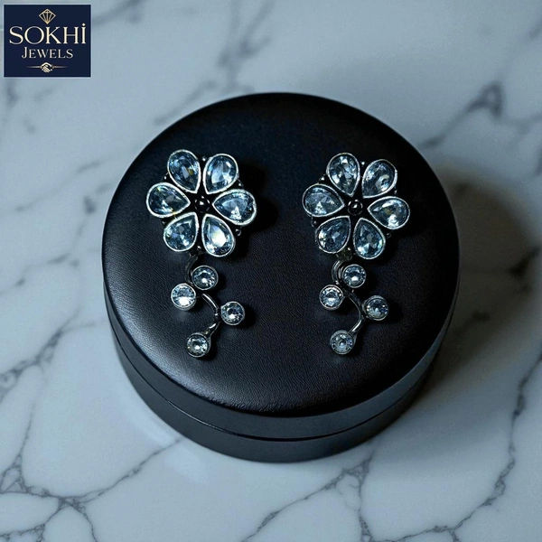 Sokhi Jewels Silver Replica Floral Crystal Drop Earrings